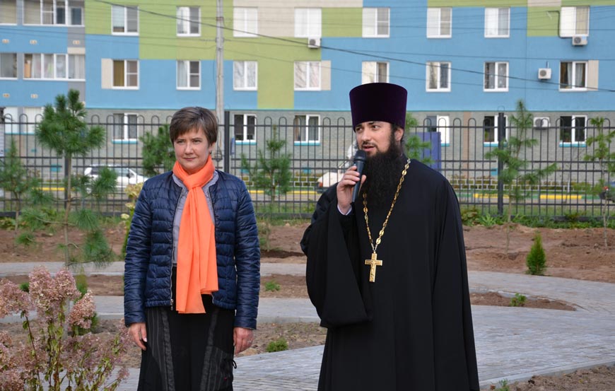 Перед закладкой сквера благочинный Автозаводского района протоиерей Александр Бухвостов отслужил молебен в храме перед началом доброго делания.