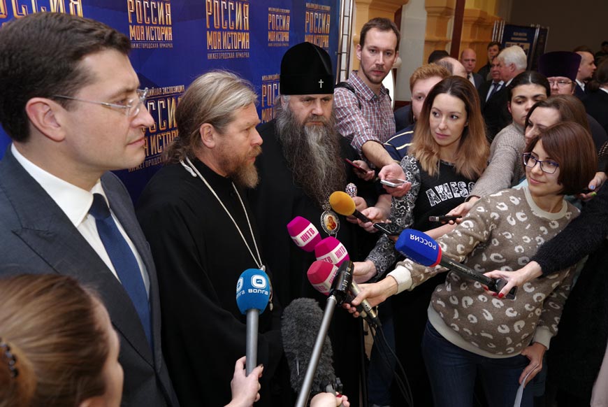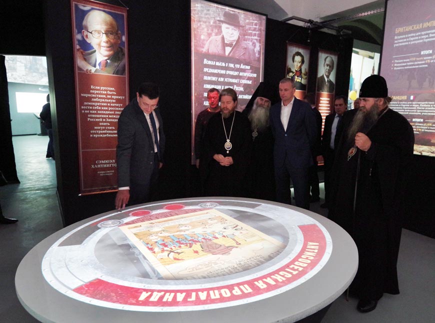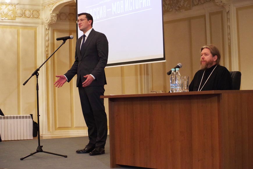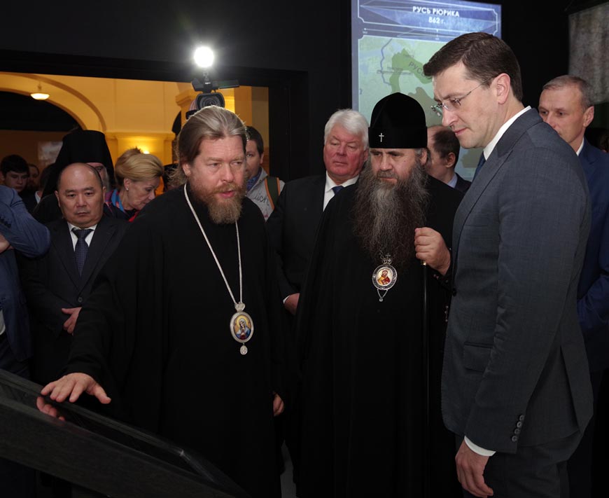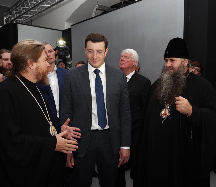 К собравшимся обратился Глеб Никитин. Он приветствовал участников беседы и поблагодарил епископа Тихона и его сподвижников за труды по созданию парка. «Мультимедийная историческая выставка стала уникальным гуманитарным проектом, – подчеркнул глава Нижегородского региона. – Такие экспозиции очень нужны нашей стране, они способны сыграть серьёзную роль в деле воспитания патриотизма».