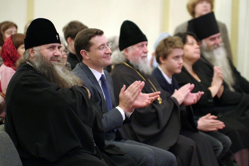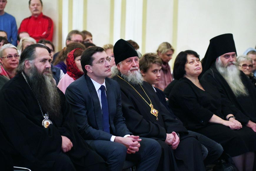 После экскурсии в Гербовом зале ярмарки владыка Тихон провёл встречу с нижегородскими педагогами, школьниками, студентами. На ней присутствовали представители нижегородского духовенства и правительства области.