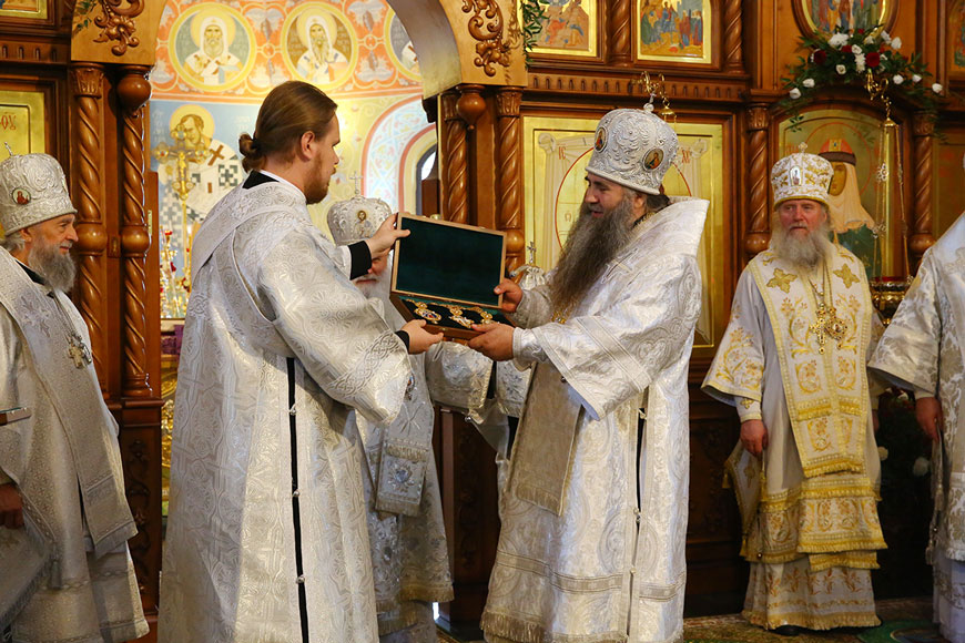 В этот день епископ Филарет тоже отмечал день рождения – викарию Нижегородской епархии исполнилось 44 года. Митрополит Георгий поздравил его с праздником и преподнёс подарок – икону святой княгини Ольги, две панагии и крест.