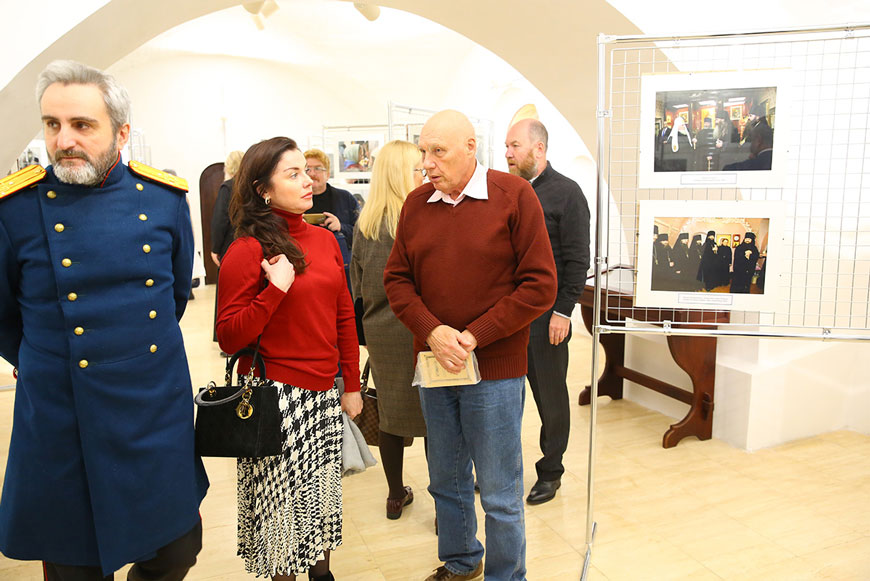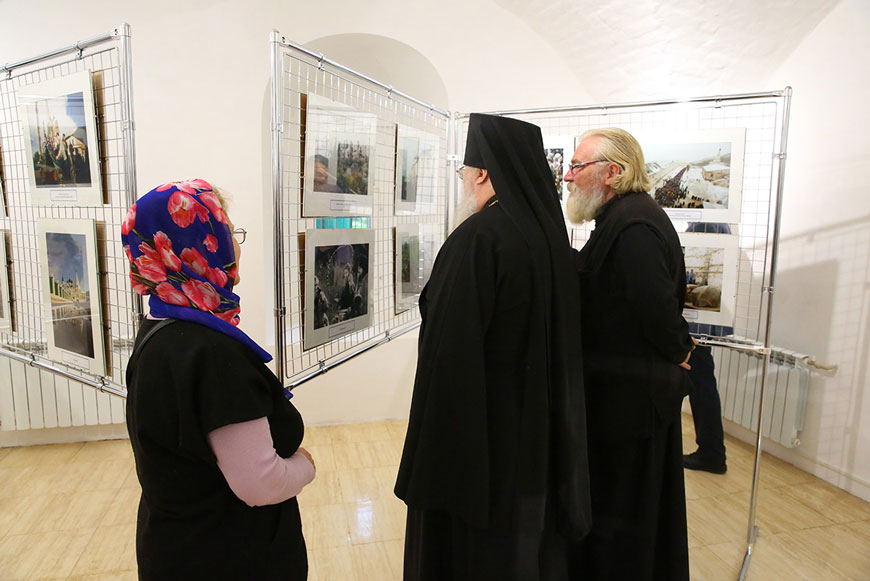Затем гости встречи познакомились с выставкой фотографий «Возрождение», рассказывающей о постсоветской истории Печерского монастыря.