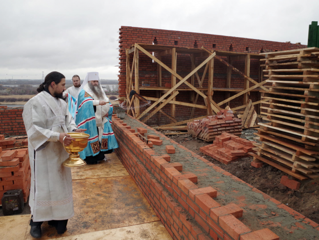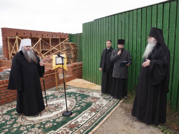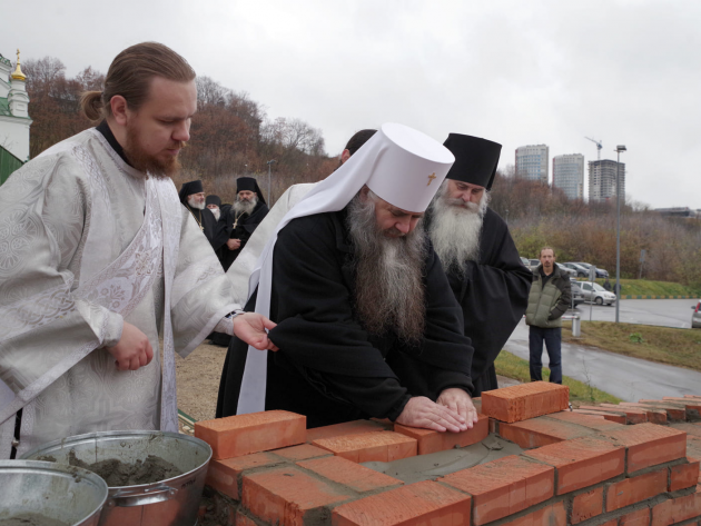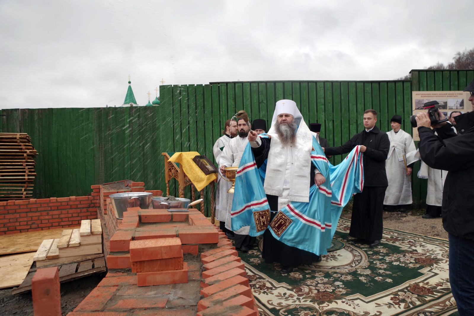 Архипастырь также совершил чин освящения закладного камня Северо-Западной башни и участка Западной монастырской стены.