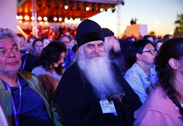 Перед началом мероприятия глава Нижегородской митрополии приветствовал гостей и участников фестиваля: «Дорогие друзья! Нижний Новгород славен своими традициями. Здесь, на слиянии великих рек Волги и Оки, под стенами благословенного кафедрального собора в честь святого благоверного князя Александра Невского, уже традиционно проводится музыкальный фестиваль «Великая Русь». Нам очень важно передать будущим поколениям дух святой Руси и великой России. Мы — великий народ, у нас славная история и традиции. Мы любим свою землю и будем ее хранить в веках. Нам очень важно понимать, что история нашей страны, жизнь нашего народа неотделимы от Христа, от веры православной, от традиций и устоев. Сегодня наш взор обращен к будущим поколениям — тем, кому сегодня 10, 15, 18 лет, сохранять эту землю. Мы хотим, чтобы смута в головах в и сердцах нас не порабощала. И мы сегодня говорим: «Русь святая, храни веру православную, в ней же тебе утверждение». Благословенный Нижний Новгород, с праздником!»