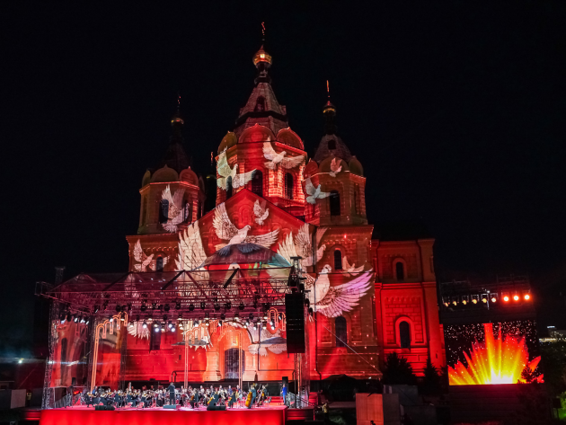 Он посвящен культурным и историческим событиям нашей страны, ее героям. Зрители увидели и услышали музыкальную программу, сопровождаемую пиротехническими эффектами и архитектурной подсветкой храма.