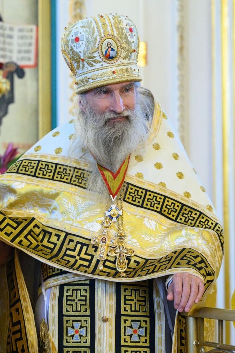 Митрополит Псковский и Порховский Тихон о благословению Святейшего Патриарха Кирилла вручает протоиерею Олегу Тэору Орден князя Даниила Московского второй степени.