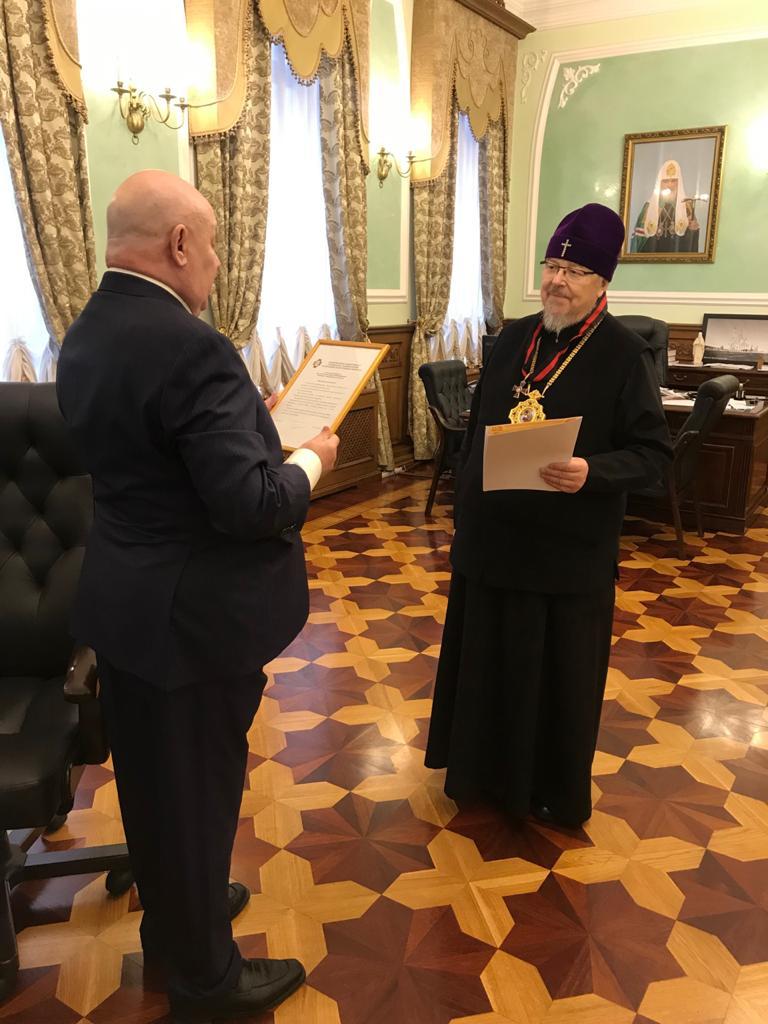 Вручая высокую награду Сергей Олегович подчеркнул связь истории и современности на примере деятельности Владыки: Князь Владимир ввел христианство на Руси, а Владыка отдает все силы во имя служения Русской Православной Церкви.