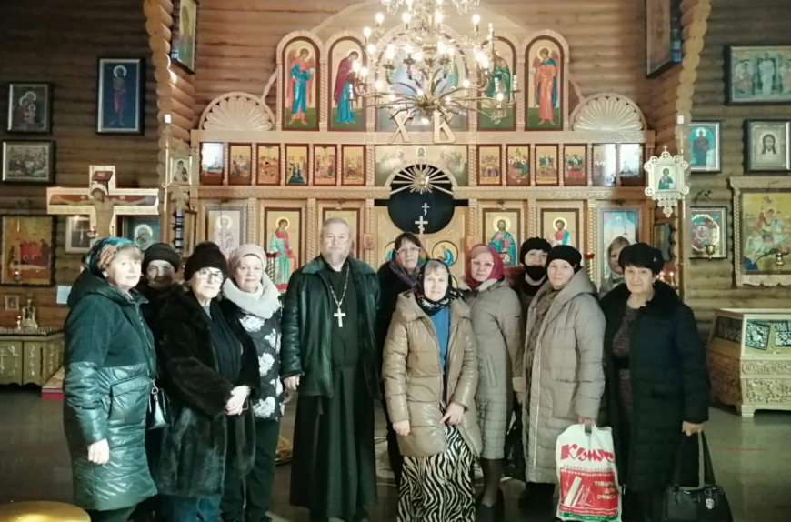 Группа приняла участие в молебне о здравии наших солдат, принимающих участие в спецоперации на Украине. Молились о мире, Президенте Российской Федерации В.В. Путине, о всех пленённых и раненых. С большим интересом участники волонтёрской группы выслушали экскурсовода О.А. Шугайлину, представившую выставку.