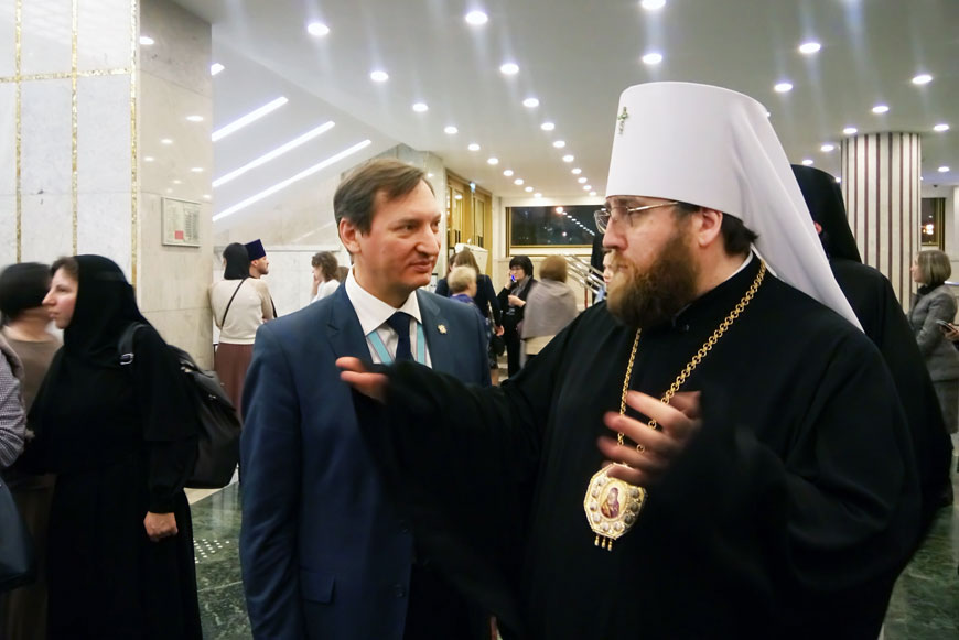Модератором круглого стола выступил помощник председателя Издательского совета иеромонах Макарий (Комогоров). Во встрече приняли участие ответственные за развитие и контроль за книгораспространением и развитие библиотечной сети в епархиях из разных регионов. Шахтинскую епархию на форуме представлял епархиальный ответственный за книгораспространение и развитие библиотечного дела, епархиальный древлехранитель, старший преподаватель Илья Шарков, рассказавший собравшимся о популяризации православной книги в ряде совместных научно-просветительских проектов Шахтинской епархии, Института сферы обслуживания и предпринимательства (филиала) ДГТУ в г. Шахты и Ростовского отделения Императорского Православного Палестинского Общества.