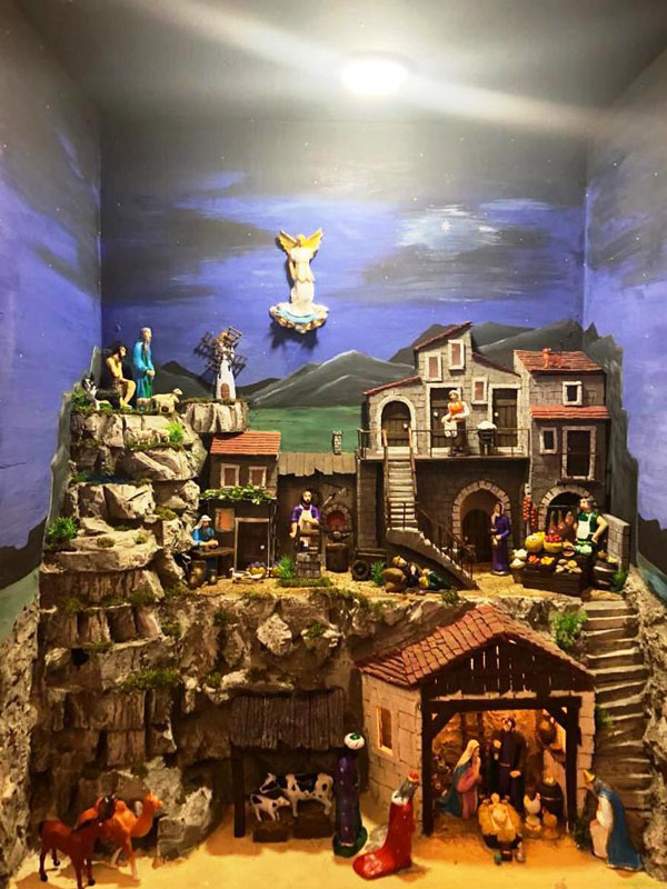 В вертепе наглядно показана история о Рождестве Христовом. Здесь мы видим город Вифлеем и его жителей, которые вели свою обыденную жизнь, когда с ними рядом совершалось великое чудо спасения всего человечества. Также можно увидеть торговца мясом, фруктами и прочими вещами, нужными для народа; кузнеца, который трудится для жителей города; гончара и женщину, которая идёт к колодцу за водой. Особый момент в композиции – это нищий, напоминающий нам о том, что с нами рядом всегда есть люди, которые нуждаются в нашем внимании и помощи.