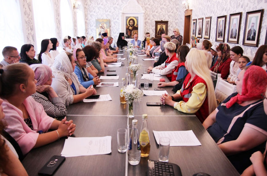 Перед началом собрания его участники помолились на Божественной Литургии и молебне в храме во имя святых Царственных страстотерпцев Спасского женского монастыря. Богослужение возглавил благочинный I Симбирского городского округа протоиерей Николай Архангельский. По окончании Литургии и молебна он поздравил настоятельницу обители игумению Сергию (Вотрину) с днем тезоименитства.