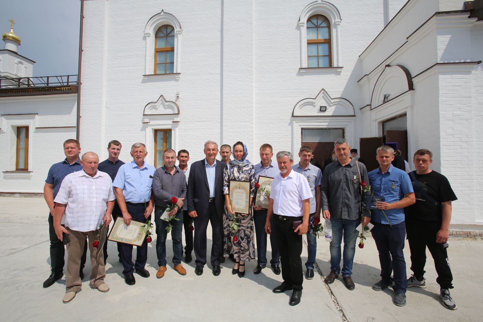 По окончании Божественной литургии в освящённом храме митрополит Лонгин вручил в знак благодарности благотворителю, строителям храма, помощникам монастыря церковные награды.