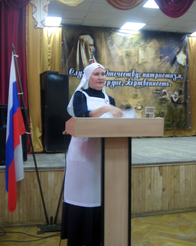 Центральное место было отведено отображению выдающейся роли Великой княгини Елизаветы Фёдоровны в основании и становлении Марфо-Мариинской обители и православного сестричества милосердия в России, её жертвенного подвига. Этому была посвящена литературно-художественная композиция, вдохновенно исполненная учениками школы.