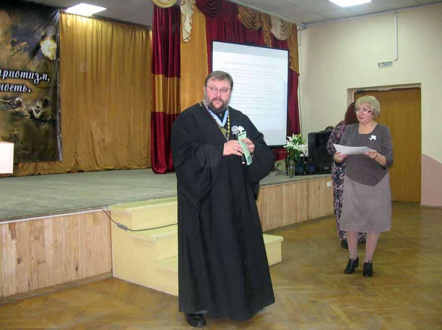 Благодарственными письмами и подарками от Тихоновского благочиния наградил победителей руководитель Тольяттинского отделения ИППО, один из организаторов конференции протоиерей Андрей Матвеев, благочинный Тихоновского благочиния, настоятель прихода в честь святителя Тихона, Патриарха Московского и всея Руси.