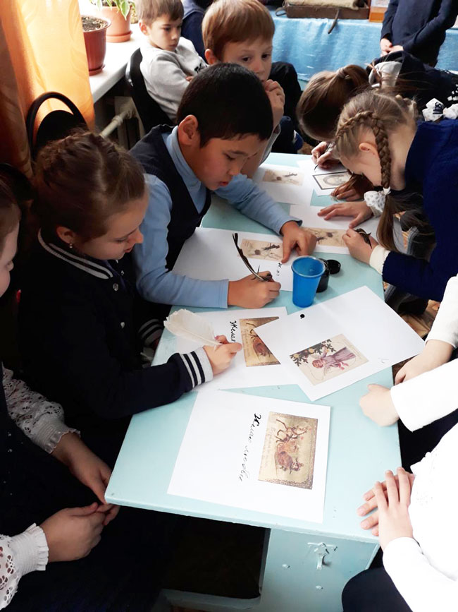Далее ребята попробовали написать рождественское поздравление настоящими чернилами и пером – как писали их ровесники сто с лишним лет назад. А в завершение для участников праздника была проведена викторина, победительница которой получила от Тульского отделения ИППО подарок.