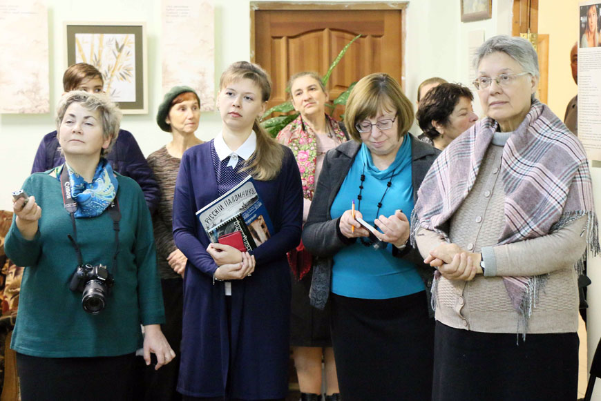 Рассказывая о святителе Николае, Марина Михалёва, действительный член ИППО, обратила внимание посетителей выставки и на традиционные японские православные иконы Божией Матери, переводы некоторых текстов Священного Писания на японский язык.