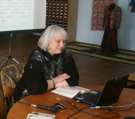 Марина Шуманская подготовила презентацию, рассказывающую об основных вехах жизни основоположника славянофильства, усадьба которого находится недалеко от Тулы. Марина Шуманская подчеркнула исключительную приверженность Алексея Хомякова Православию, и эта тема нашла продолжение в выступлении Марины Михалёвой. Она подробно рассказала о взглядах Алексея Степановича относительно пути развития России.
