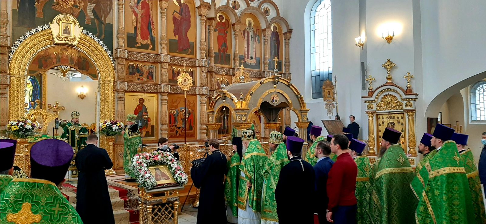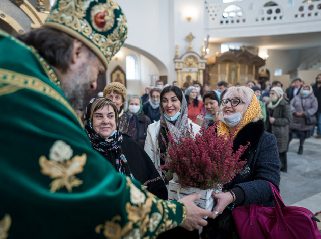 Также на праздничном богослужении присутствовали представители регионального отделения Императорского православного палестинского общества. Руководитель отделения Ирина Аксенова, ее заместитель Нина Метлина, а также Мария Любимова и Ольга Аксенова после завершения литургии поздравили Владыку Амвросия с тезоименитством.