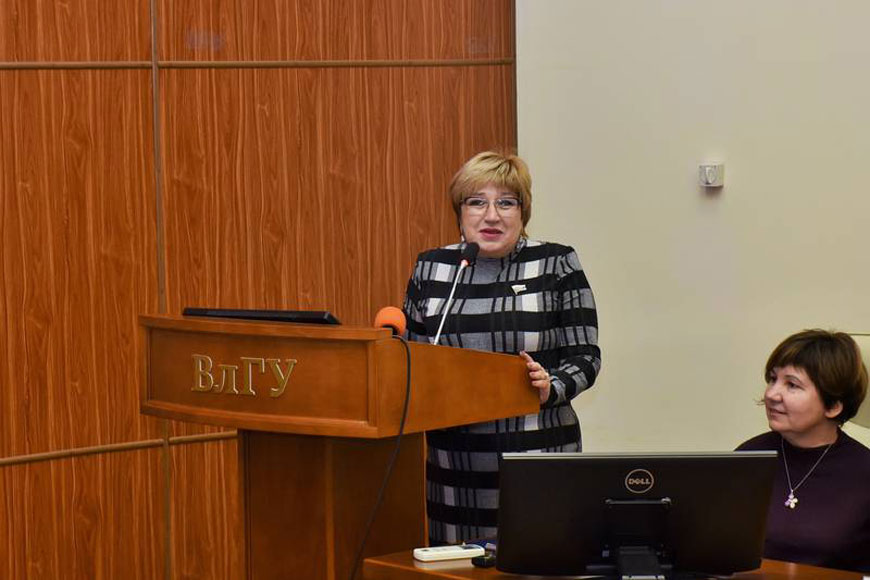 Юбилейное заседание началось с музыкального выступления преподавателей, студентов и выпускников ВлГУ под руководством директора Института искусств и художественного образования Ларисы Ульяновой.