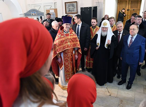 Патриарх Московский и всея Руси Кирилл и ректор МГУ М. В. Ломоносова Виктор Садовничий перед началом Божественной литургии в домовом храме Святой мученицы Татианы. 25 января 2019. Фото: РИА Новости, Сергей Пятаков