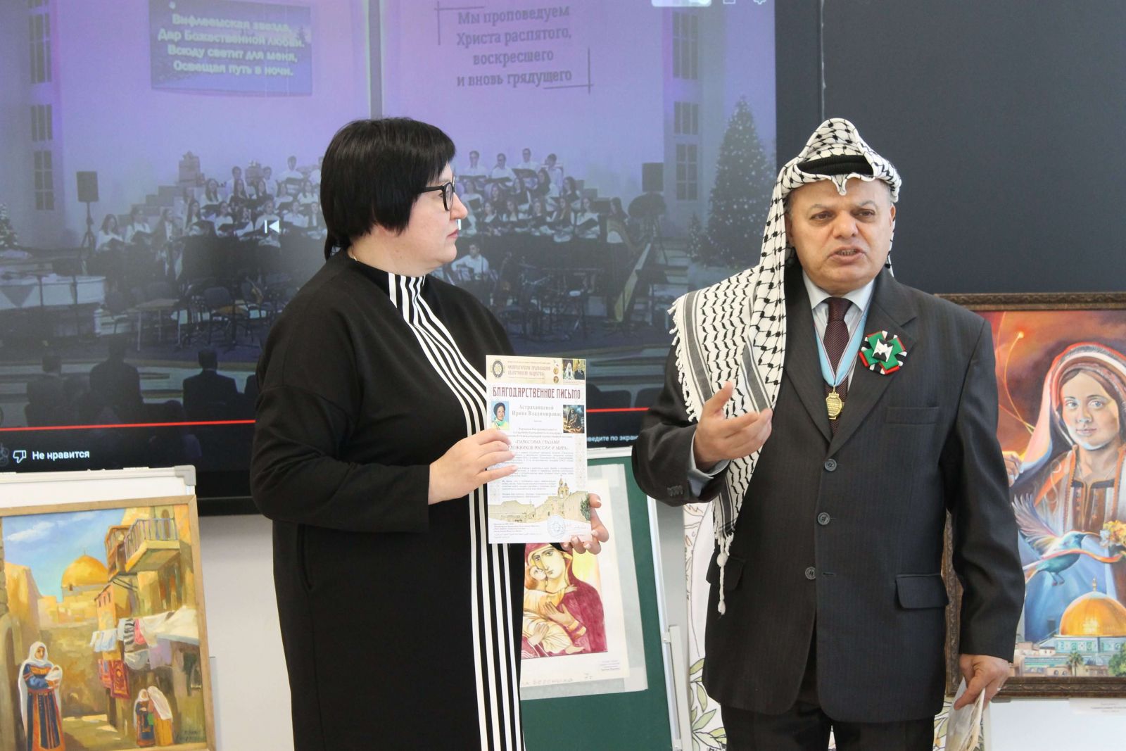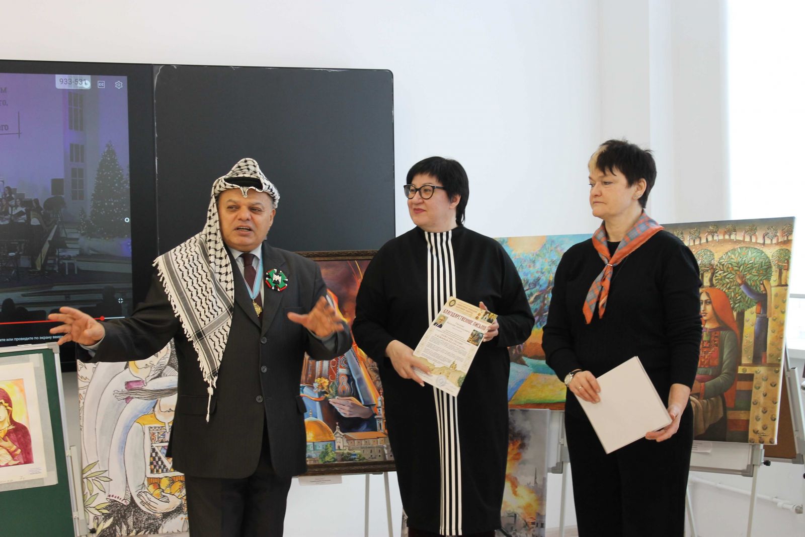 С ответным словом выступил руководитель Чувашского отделения ИППО, доктор права, академик Международной Академии «Европа-Азия» и Международной Академии Культуры и Искусства Бассам Фахти Аль-Балауи. Он поблагодарил присутствующих за внимание к международному проекту «Палестина глазами российских и зарубежных художников» . С болью в каждом слове он рассказал о непростом положении , в котором находится сейчас его родная страна, тем важнее и значимее творческая поддержка художников разных стран.