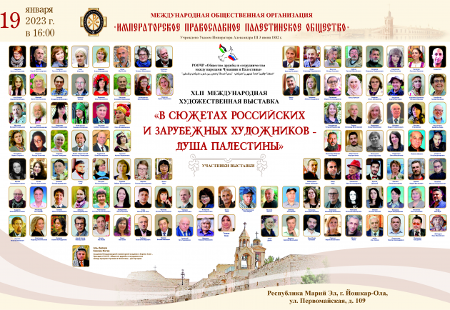 Выставка организована Чувашским отделением Международной общественной организации «Императорское Православное Палестинское Общество», Региональной общественной организацией Чувашской Республики «Общество дружбы и сотрудничества между народами Чувашии и Палестины», Российским комитетом солидарности и сотрудничества с народами Азии и Африки (Представительство в Чувашской Республике), а также Марийской Республиканской общественной организацией ветеранов, пенсионеров войны и труда Вооруженных Сил и правоохранительных органов.