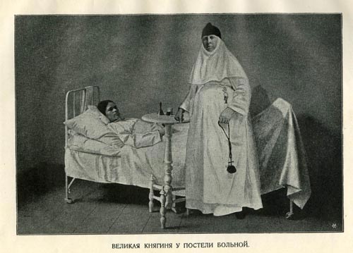 В больницу при Покровском монастыре принимали женщин всех национальностей и всех христианских вероисповеданий. В лечебнице для приходящих оказывали помощь и евреям, и мусульманам. Все больные, поступающие в больницу, записывались в синодик Великой княгини. Она о них молилась. Она полюбила долгие монастырские богослужения. Она сама нередко читала во время службы шестопсалмия, каноны и часы.