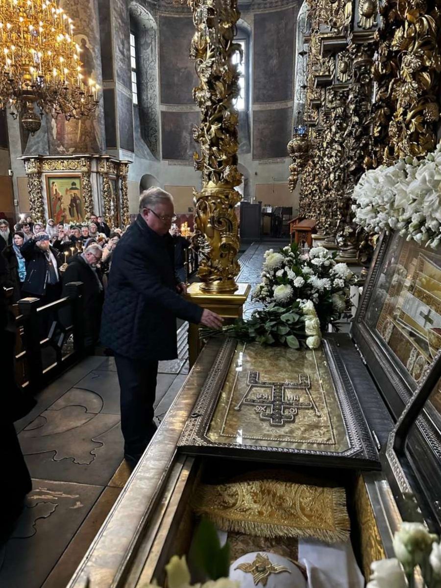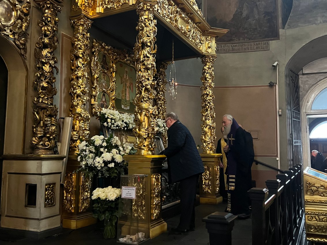 По окончании Богослужения Председатель Общества возложил цветы к мощам святителя Тихона. Также действительные члены Общества поклонились святыням Обители.