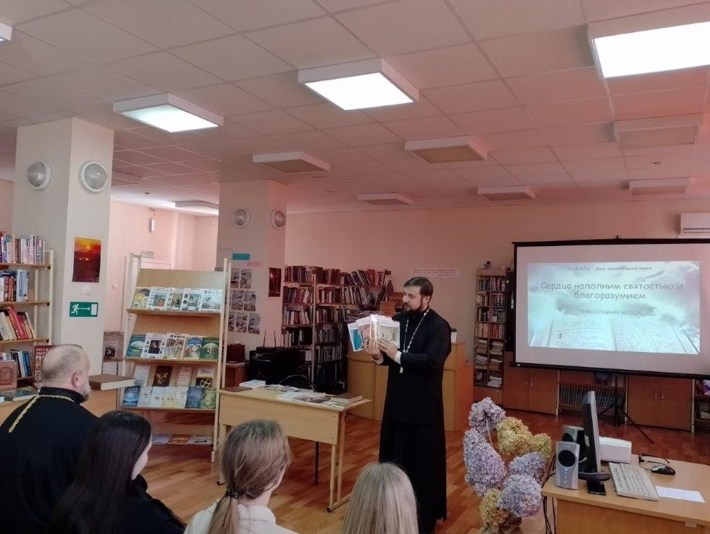 Встреча прошла в центральной районной библиотеке, где священнослужители Усть-Донецкого благочиния Волгодонской и Сальской епархии Донской митрополии поговорили с ребятами о Православной книге, христианских истоках в классической литературе, о книге бумажной и цифровой.