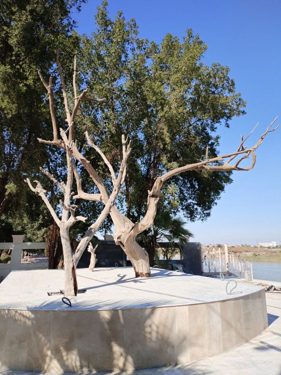 Согласно Библии, «из Едема выходила река для орошения рая; и потом разделялась на четыре реки» (Быт. 2,10). Примерно в 350-и метрах от слияния рек находится сухое дерево, определяемое местным преданием как произраставшее в Эдемском саду Древо познания добра и зла. Осознание того, что мы находимся в земном раю, где жили Адам и Ева, рядом с библейским деревом, на стрелке между Тигром и Евфратом, вызвало у нас неописуемые чувства.