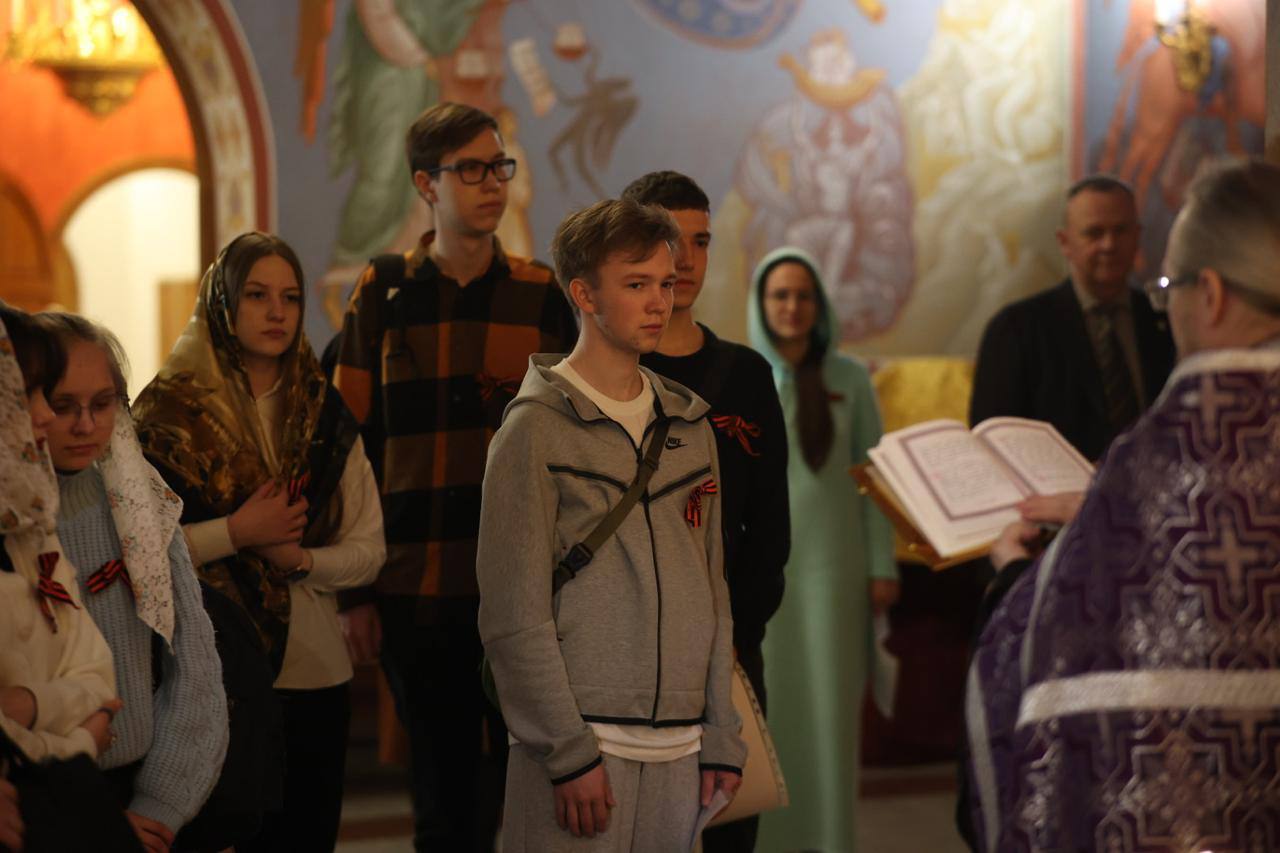 Диктант Победы в центре «Царский» начался с молебна в Никольском храме, который совершили клирики Храма-памятника на Крови. После инструктажа для участников по заполнению бланков, который провела действительный член Екатеринбургского отделения ИППО заведующая музеем святой Царской семьи Татьяна Романюк, прошла онлайн трансляция церемонии открытия «Диктанта Победы» из Москвы.