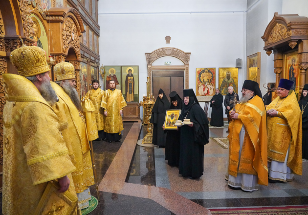 За богослужением молились настоятельница Свято-Троицкого Серафимо-Дивеевского монастыря игумения Сергия (Конкова), настоятельница Александро-Невского Ново-Тихвинского монастыря игумения Домника (Коробейникова) и настоятельница Свято-Покровского Верхотурского монастыря игумения Магдалина (Сулеменева) с сестрами обителей.