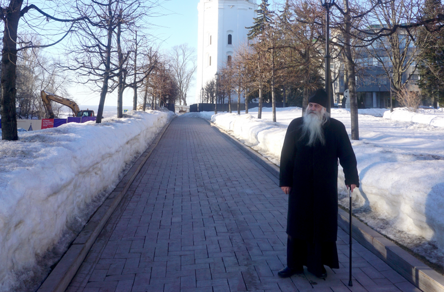 Архимандрит Тихон и Александр Панин осмотрели воссозданную колокольню Спасо-Преображенского собора, храм св. прп. Симеона Столпника и Никольскую церковь при бывшем Аракчеевском корпусе.