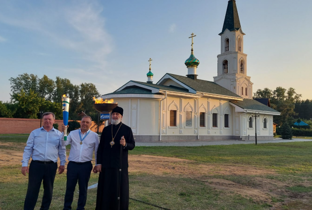 Символический факел при пуске газа в газопотребляющее оборудование монастыря зажгли епископ Шадринский и Далматовский Владимир, Генеральный директор АО «Газпром газораспределение Курган» Олег Попов и руководитель Курганского отделения ИППО Александр Брюханов.
