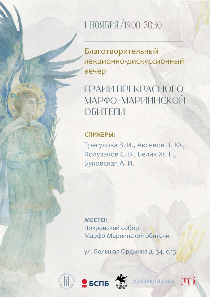 В рамках празднования 160-летия со дня рождения Великой княгини Елизаветы Федоровны в Покровском соборе Марфо-Мариинской обители в Москве прошел благотворительный лекционно-дискуссионный вечер «Грани прекрасного Марфо-Мариинской обители милосердия». Все полученные средства организаторы передают на благотворительные проекты Обители.