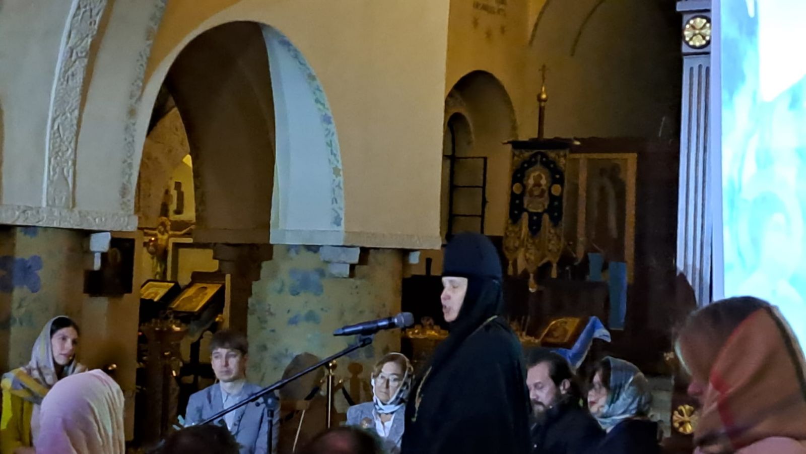 Со вступительным словом на вечере выступила настоятельница Марфо-Мариинской обители игумения Елисавета (Позднякова).