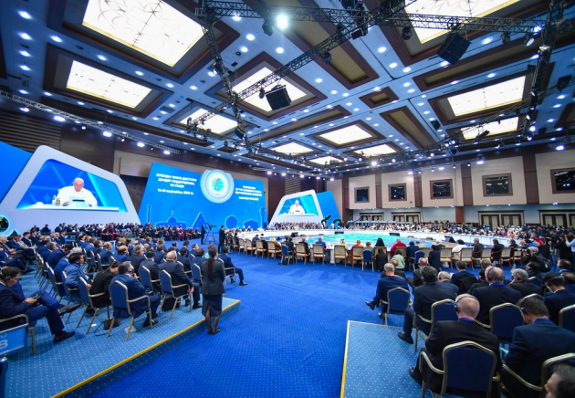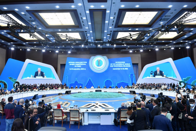 С приветственным словом к участникам Съезда обратился Президент Республики Казахстан К.К. Токаев, который заявил об «общей заинтересованности в сохранении мира и укреплении межцивилизационного диалога» и отметил, что «в эпоху перемен и неопределенности сегодняшняя встреча приобретает особое значение». Глава государства подчеркнул: «В современных сложных реалиях крайне важно, что религиозные лидеры, сидя за одним столом, демонстрируют всему миру пример доброй воли, преодолевающей любые разногласия. В этом, на мой взгляд, состоит главная миссия и особенность нашего Съезда». Также он указал на то, что «силой, угрозами или санкциями устранить возникающие противоречия невозможно. В такие моменты особенно важно помнить о гуманистических идеалах. Их главными хранителями, безусловно, являются традиционные религии».