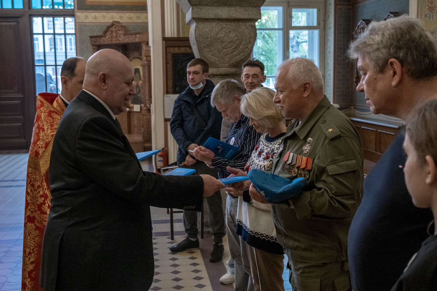 После молебна руководитель Красноярского отделения ИППО Сергей Гонюхов рассказал о деятельности Общества и вручил белорусским друзьям памятные подарки, среди которых была книга об истории регионального отделения ИППО по Красноярскому краю, написанная членом регионального отделения Общества, кандидатом исторических наук Еленой Шушкановой.