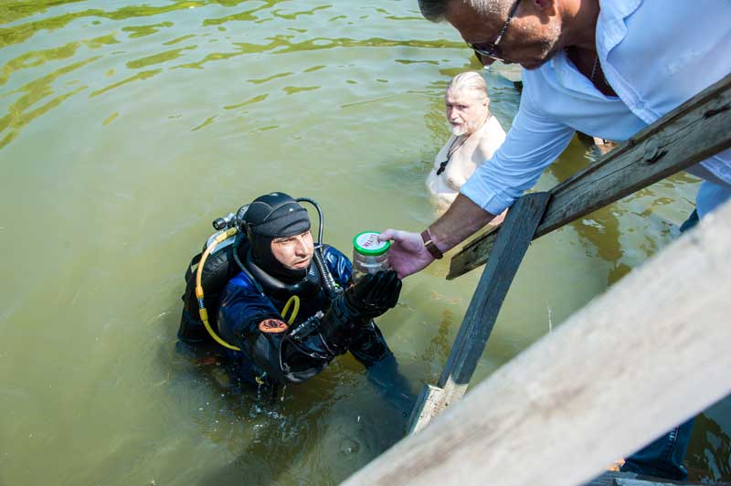 Погружение состоялось по окончании праздничных богослужений. В день обретения чудотворного образа Святителя Николая в Куюках по традиции было совершено две Божественные литургии. Ранняя служба совершалась в старинном храме, строительство которого началось сразу после явления иконы. Поздняя Литургия и водосвятный молебен были совершены в храме-часовне на реке Куюковка.