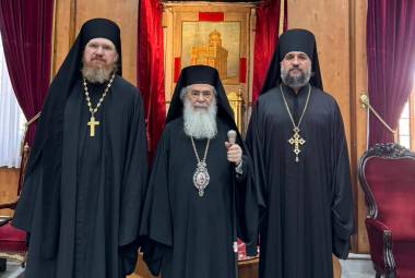 Действительный член ИППО, начальник РДМ архимандрит Вассиан (Змеев) встретился с Блаженнейшим Патриархом Иерусалимским Феофилом