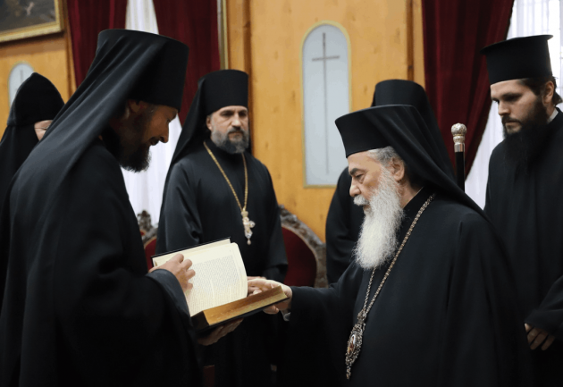 В ходе приема Его Блаженству был представлен новый насельник Миссии иеромонах Филофей (Артюшин), а также были обсуждены важные вопросы, касающиеся сотрудничества Русской духовной миссии и Иерусалимского Патриархата в том числе на ниве научной деятельности и духовного просвещения пасомых.