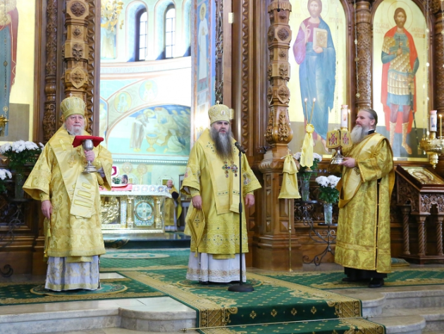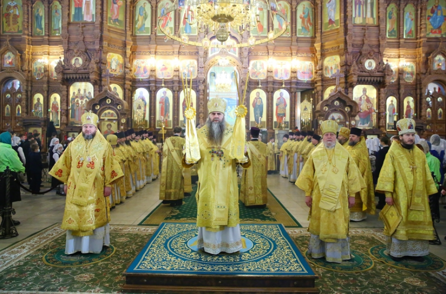 Владыке сослужили викарии Нижегородской епархии епископ Балахнинский Илия и епископ Дальнеконстантиновский Филарет, а также епископ Лысковский и Лукояновский Силуан, секретарь Нижегородской епархии и ключарь этого собора протоиерей Сергий Матвеев, первый проректор Нижегородской духовной семинарии иерей Виктор Плаксин, настоятели мужских монастырей, благочинные округов и другие клирики митрополии.