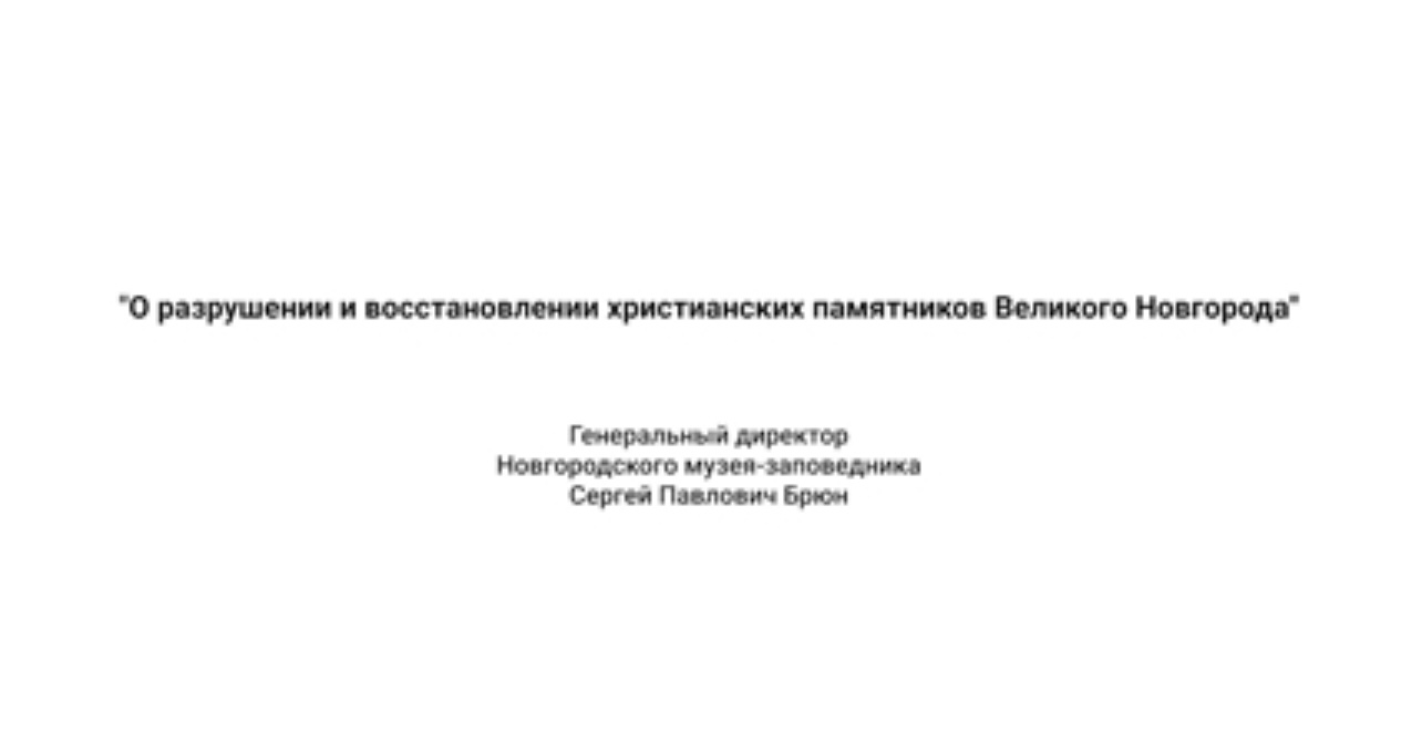 Доклад действительного члена ИППО Сергея Брюна «О разрушении и восстановлении христианских памятников Великого Новгорода», подготовленный для тематической сессии ИППО