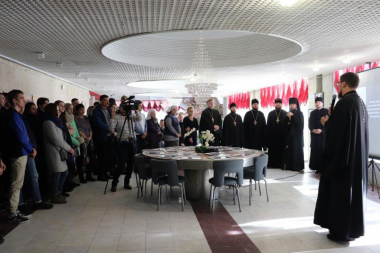 Сегодня в Преображенском соборе Димитровграда Литургия завершилась славлением перед иконой Пресвятой Троицы – духовенство и хор исполнили тропарь, кондак и величание празднику.