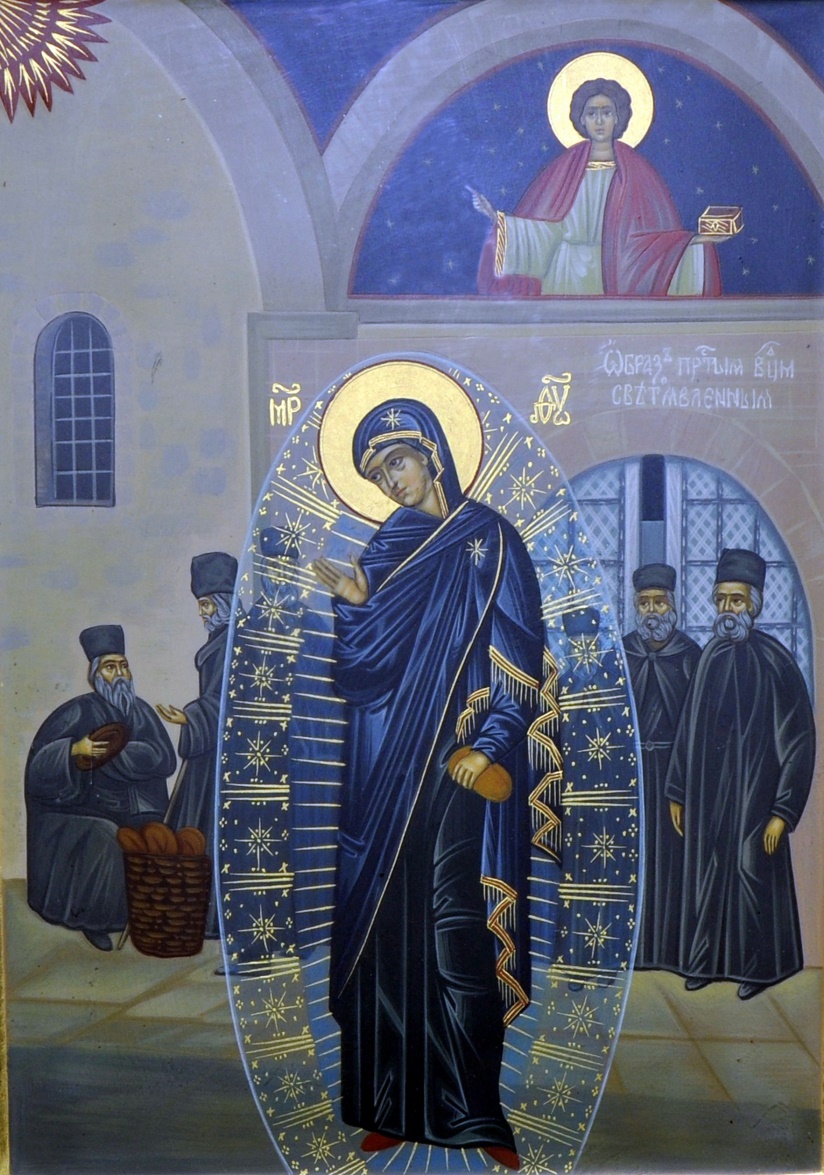 Во втором соборном храме Покрова Пресвятой Богородицы, расположенном на верхнем этаже большого братского корпуса, хранятся мощи преподобного Силуана Афонского. Здесь же находится чудотворная икона Божией Матери, именуемая «Иерусалимской», икона св. Иоанна Предтечи, древняя икона св. вмч. Пантелеимона и икона священномученика Харалампия.
