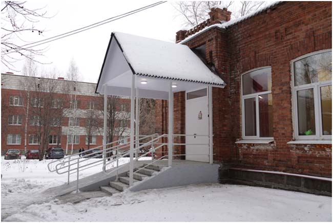 Кроме того, проведена реконструкция входной группы, которая позволила сделать крыльцо удобным и безопасным: установлен пандус для колясок, восстановлены ступени и входная дверь.