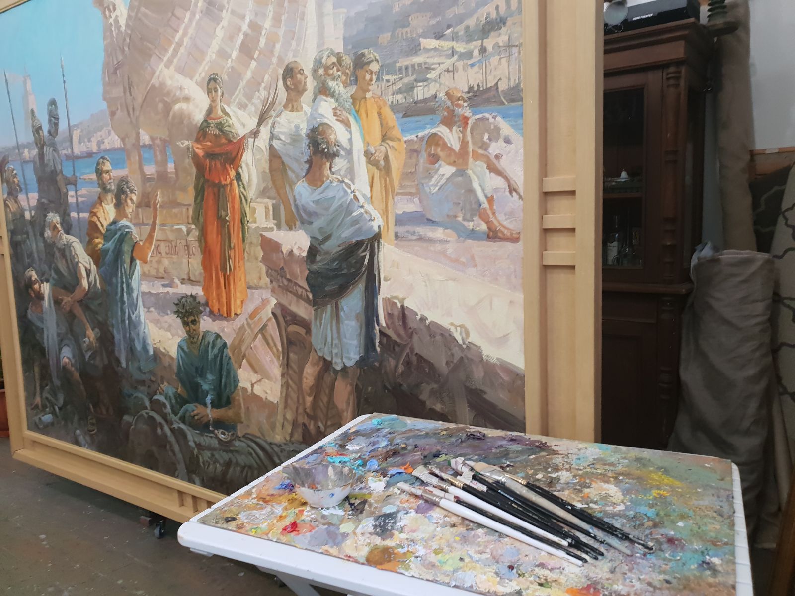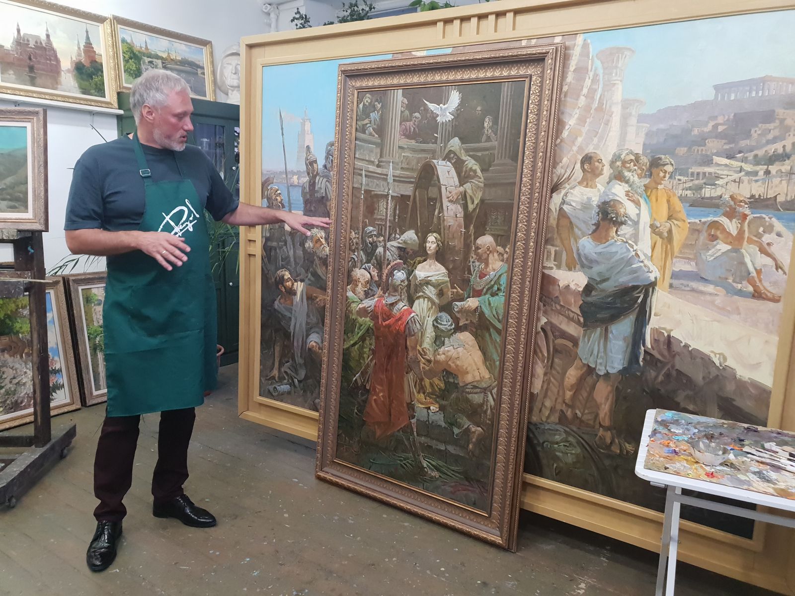 «Святая Екатерина Александрийская» и «Свет истины», посвященные небесной покровительнице уральской столицы Екатерине Александрийской. Художник рассказал собравшимся о трудностях и о своих впечатлениях во время работы над картинами. Картины впервые демонстрировались на выставке в рамках празднования Собора Екатеринбургских святых и дня рождения Екатеринбургской епархии в Культурно-просветительском центре «Царский».