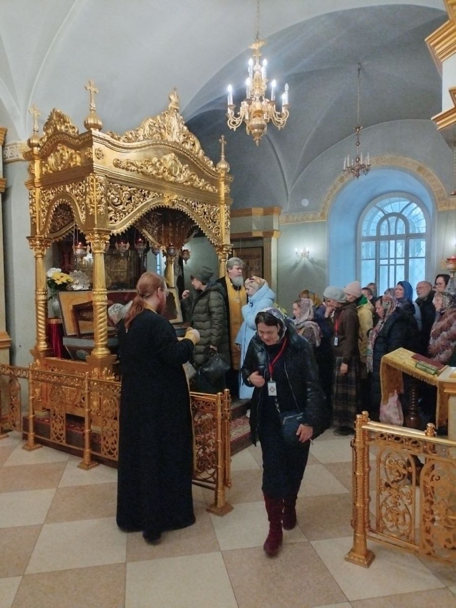 Паломники имели возможность помолиться за Божественной литургией, по окончании которой перед ракой с мощами святителя Питирима, епископа Тамбовского, руководитель Паломнической секции ИППО игумен Серафим (Кравченко) совершен молебен. Приложившись к честным мощам, поклонились богомольцы и другой епархиальной святыне – иконе Божией Матери «Тамбовская».