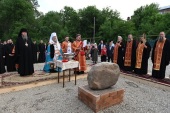 Глава Казахстанского митрополичьего округа совершил освящение закладного камня в основание памятника благоверному князю Александру Невскому в Алма-Ате