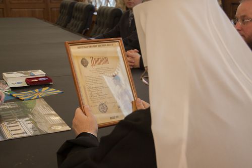 В ходе встречи митрополит Пантелеимон, по просьбе Юрия Смирнова, вручил генеральному директору медицинского центра «Гема» Юрию Мальчевскому диплом лауреата премии имени великой княгини Елизаветы Федоровны 2014 года в номинации «Бескорыстное служение делу милосердия, благотворительности и гуманитарного образования молодого поколения» под девизом «Доброе сердце».
