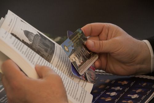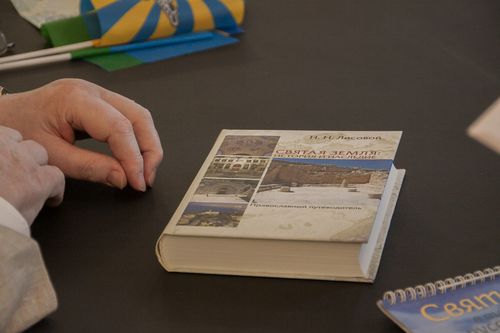 Юрий Смирнов кратко представил присутствующим и подарил Владыке православный путеводитель «Святая Земля: история и наследие», изданный недавно Императорским Православным Палестинским Обществом в помощь православным паломникам. Автором книги является заместитель председателя ИППО, доктор исторических наук Николай Лисовой.